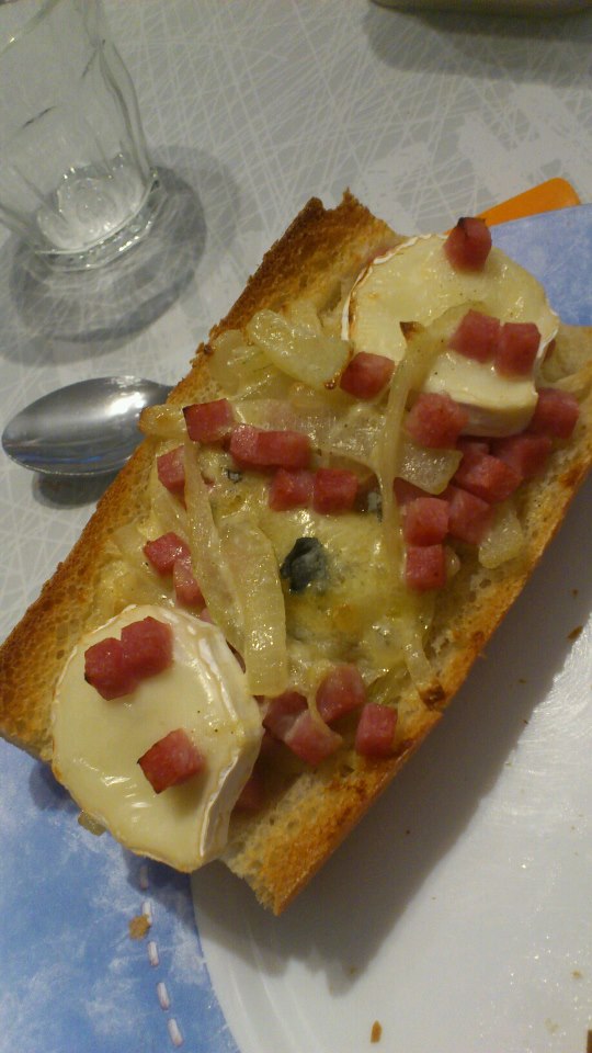 Baguette façon tarte flambé chevre et bleu d'auvergne