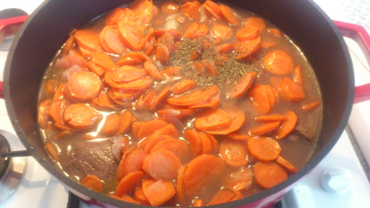 Couvrir et laisser mijoter 2h puis ajouter le reste de carotte et refaire mijoter 1H.