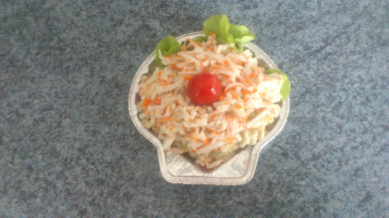 Dans un saladier mélanger 2c à c de mayonaise et 1 boite de surimi, saler,poivrer.